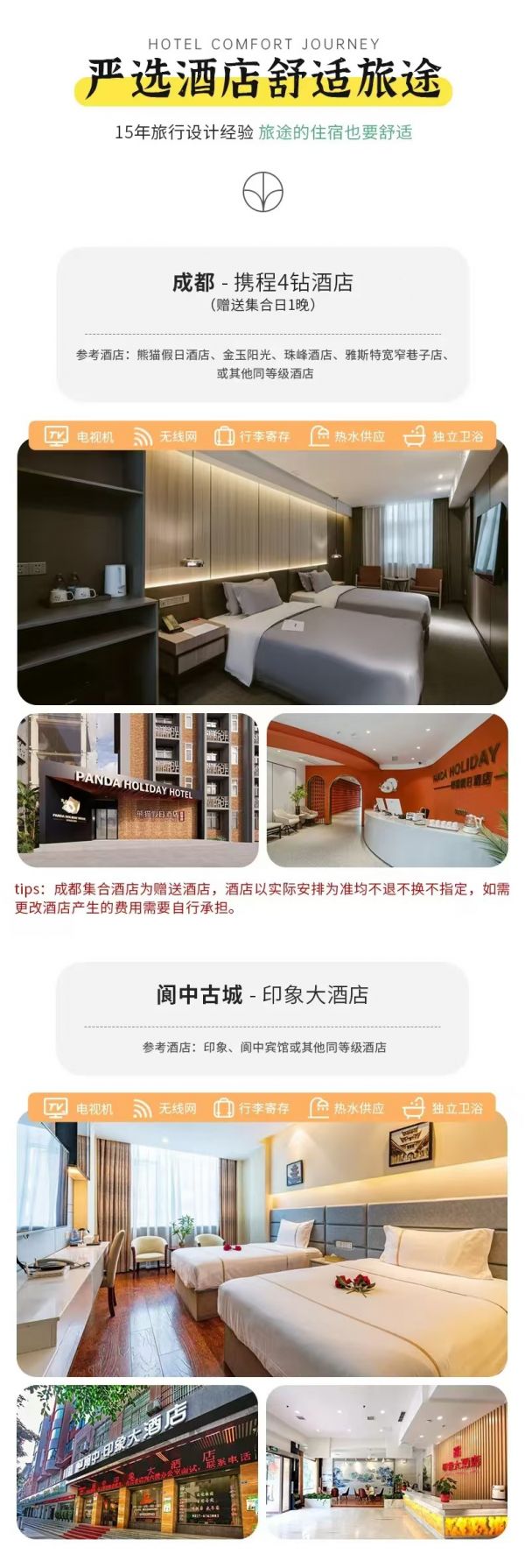 住宿:成都集合日贈送攜程4鉆酒店1晚