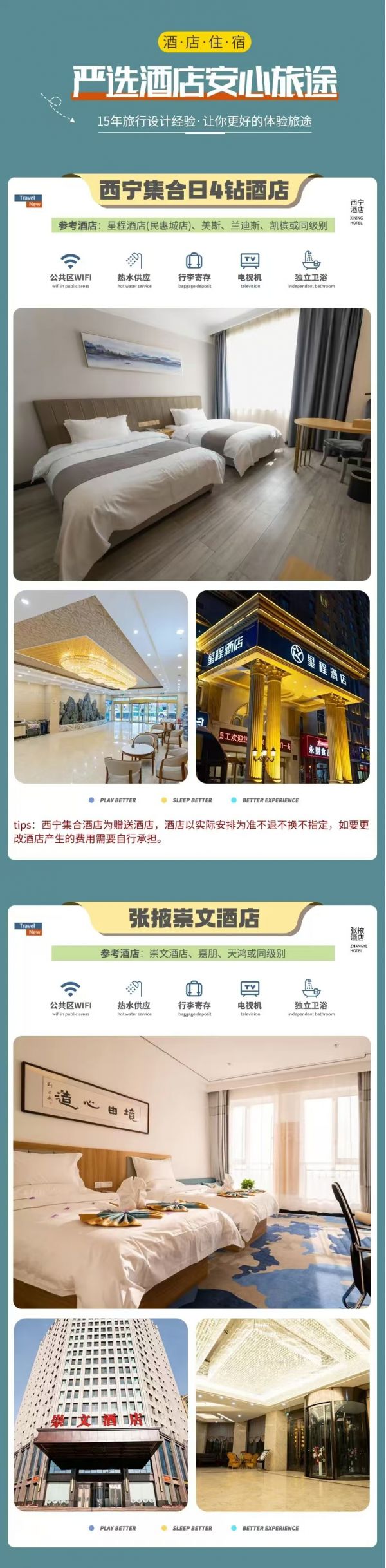 tips:西寧集合酒店為贈送酒店,酒店以實際安排為準(zhǔn)均不退不換不指定,如要更改酒店產(chǎn)生的費用需要自行承擔(dān)。