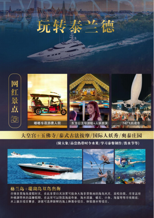 大皇宮-長(zhǎng)尾船游湄南河-水門大佛-鄭王廟(入內(nèi)參觀)-泰式古法按摩-國(guó)際人妖秀-網(wǎng)紅夜市