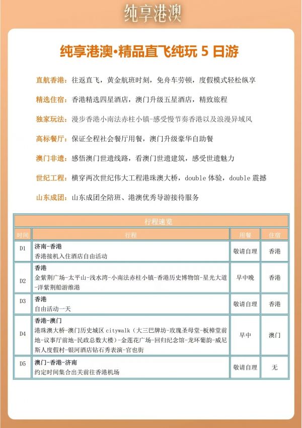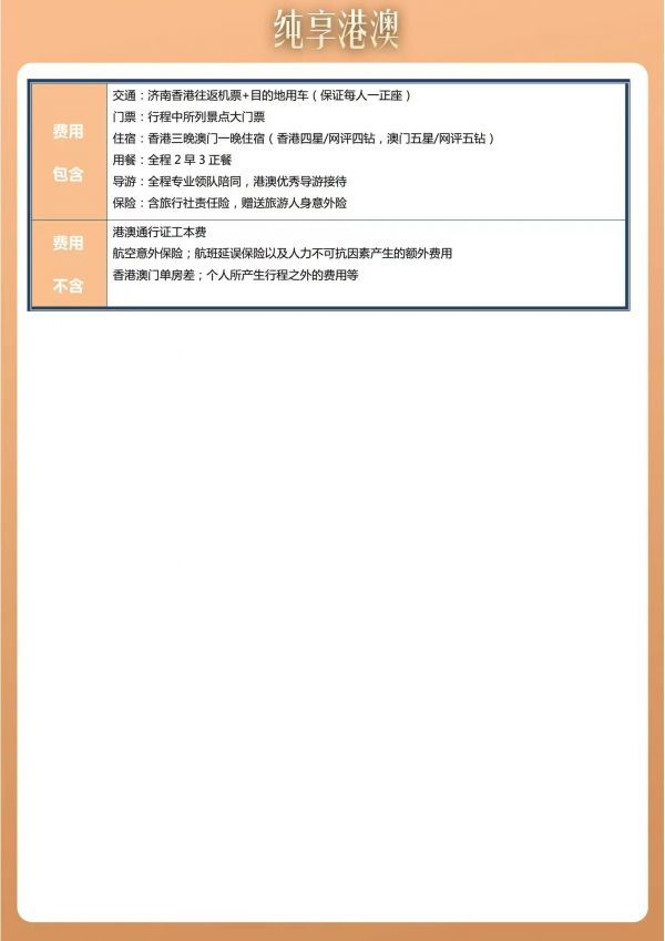 溫馨提示:請(qǐng)攜帶港澳通行證需在有效期內(nèi),本人身份證 (兒童如無身份證請(qǐng)帶好戶口本或出生證明) ,智能手機(jī),客人自行帶好港澳通行證及其他有效出行含有效簽注證件,如因客人沒有證件/無簽注。造成無法登機(jī)產(chǎn)生損失客人自行承擔(dān),個(gè)人原因無法出行機(jī)票不退任何費(fèi)用!澳門酒店一經(jīng)確認(rèn)不能取消或更改!入境小貼士----請(qǐng)準(zhǔn)備: