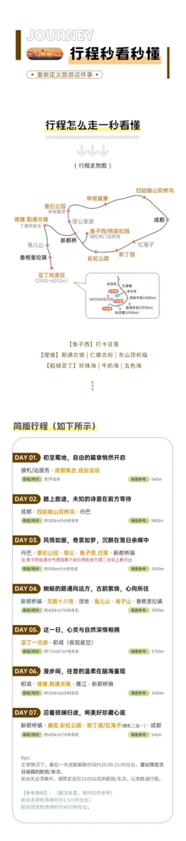 溫馨提示:四姑娘山海拔較高,可能會(huì)有輕微的高反癥狀,如頭暈、氣短等,可提前準(zhǔn)備一些抗高反藥物。山區(qū)氣候多變,記得帶上保暖衣物和雨具。