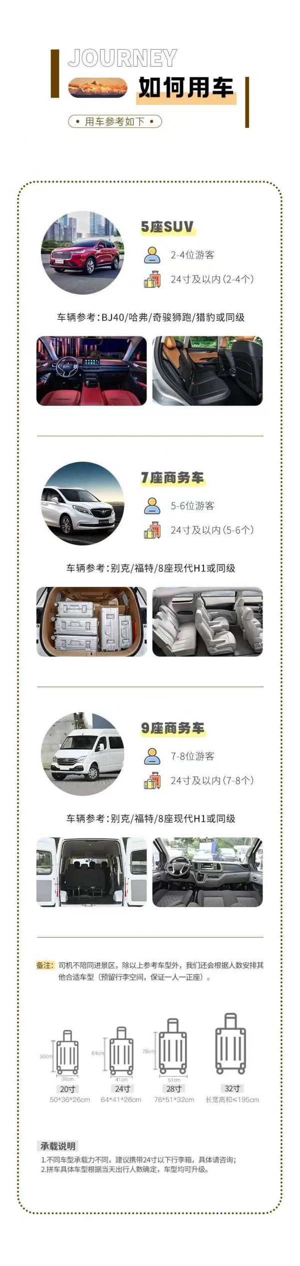 7-8位游客:乘坐9座商務(wù)車(或隨機(jī)升級(jí)9座保姆車)