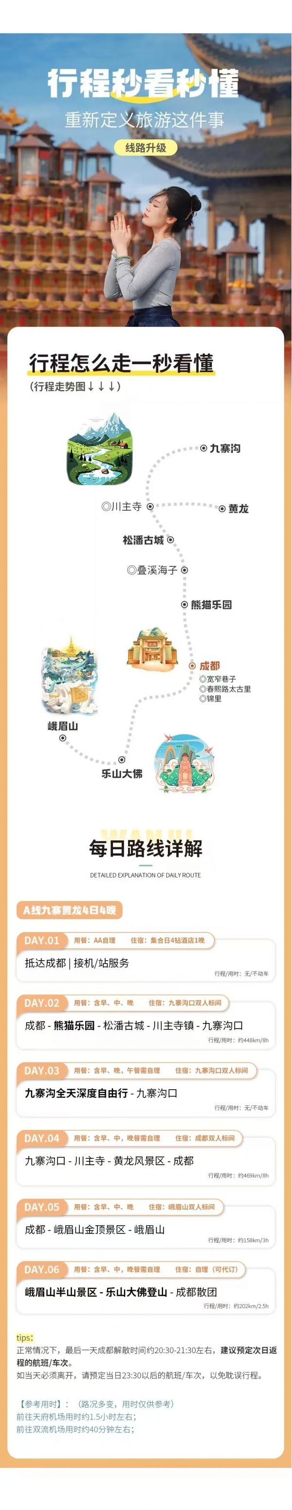 (2)九寨溝面積較大游客需求不一,因此主要以游客自助游形式游覽,如無領(lǐng)隊陪同望您諒解。游覽開始前領(lǐng)隊會與您約定好集合時間,請務(wù)必按時到達(dá)指定地點(diǎn),避免耽誤大家接下來的行程;