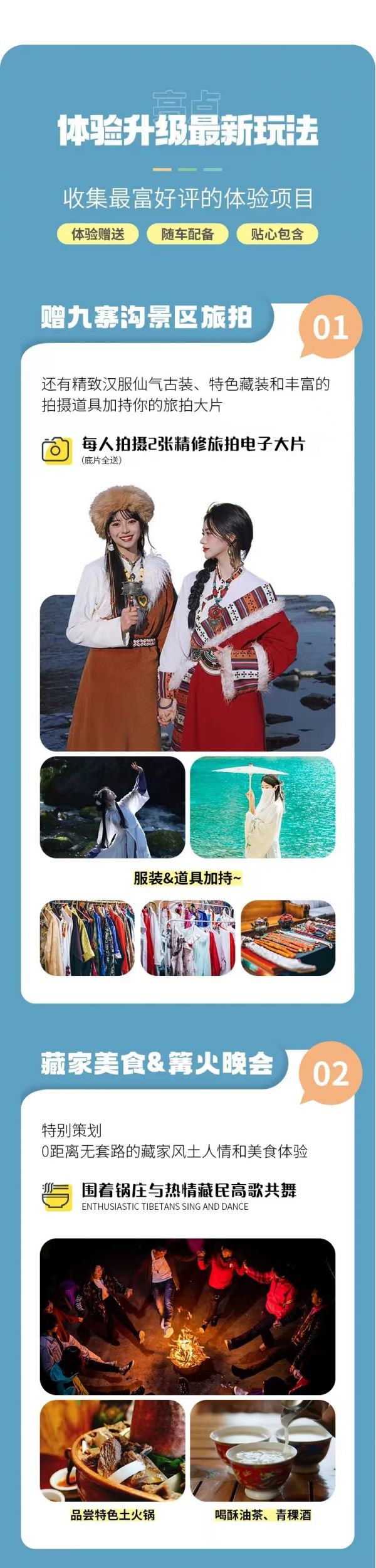 (5)走進(jìn)藏家藏文化體驗(yàn)由領(lǐng)隊/司機(jī)視實(shí)際情況靈活安排在D2或D3;如因九寨溝防疫政策規(guī)定,走進(jìn)藏家暫停營業(yè),則晚餐調(diào)整為團(tuán)餐,望您諒解。