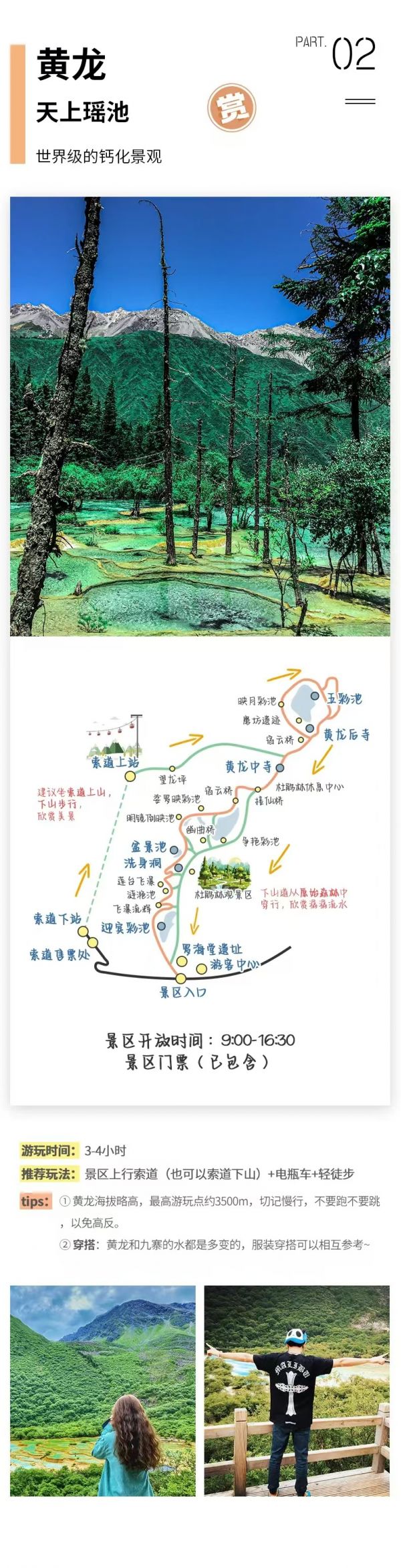 (2)特別提示:12月16日-3月31日期間黃龍索道停運(yùn),屆時需步行上下游覽黃龍景區(qū),敬請知曉。
