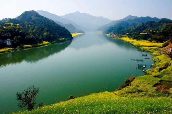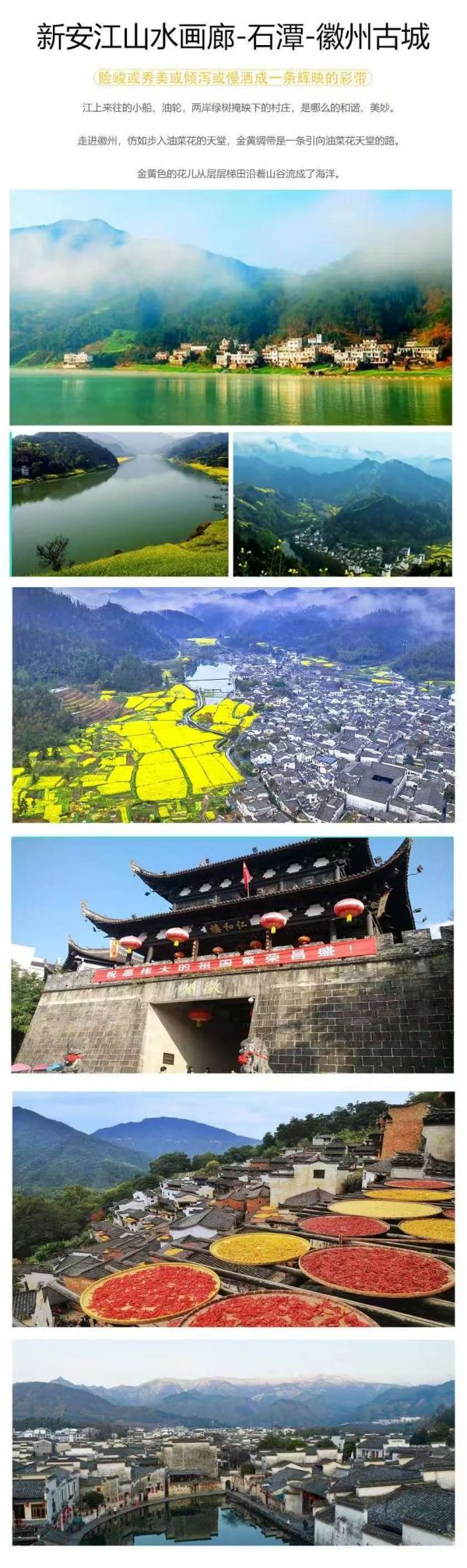 7:30準時集合出發(fā),約8:30到達深渡碼頭,乘坐畫廊游船,江上來往的小船、油輪,兩岸綠樹掩映下的村莊,是哪么的和諧、美妙。走進徽州,仿如步入油菜花的天堂,金黃綢帶是一條引向油菜花天堂的路。