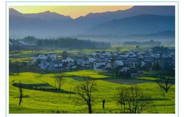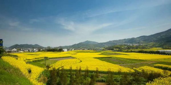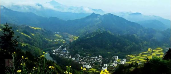 金黃色的花兒從層層梯田沿著山谷流成了海洋。粉墻黛瓦的村落里桃花紅、梨花白,還有那滿山的樹木和曲折幽靜的小路。