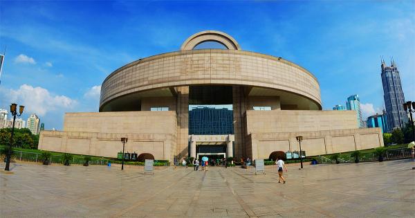 上海博物館創(chuàng)建于1952年,原址南京西路325號舊跑馬總會,1959年10月遷入河南南路16號中匯大樓,現(xiàn)址上海市中心人民廣場的南側(cè)黃浦區(qū)人民大道201號。1993年8月,上海博物館新館開工建設(shè),1996年10月12日全面建成開放。上海博物館建筑總面積39200平方米,占地面積1.1萬平方米,地下二層,地上五層,高29.5米,總投資5.7億元。新館是方體基座與圓形出挑相結(jié)合的建筑造型,具有中國“天圓地方”的寓意。館名“上海博物館”為上海第一任市長陳毅書寫。