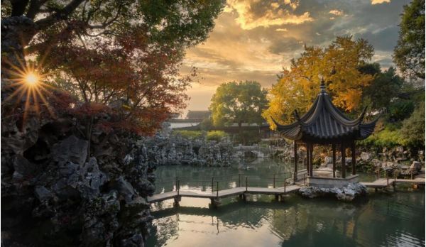 拙政園,位于江蘇省蘇州市,始建于明正德初年(16世紀初),是江南古典園林的代表作品。四百多年來,拙政園幾度分合,或為“私人”宅園,或做“金屋”藏嬌,或是“王府”治所,留下了許多誘人探尋的遺跡和典故。 拙政園與北京頤和園、承德避暑山莊、蘇州留園一起被譽為中國四大名園。拙政園位于蘇州城東北隅(東北街178號),截至2014年,仍是蘇州存在的最大的古典園林,占地78畝(約合5.2公頃)。全園以水為中心,山水縈繞,廳榭精美,花木繁茂,具有濃郁的江南水鄉(xiāng)特色。拙政園分為東、中、西三部分,東花園開闊疏朗,中花園是全園精華所在,西花園建筑精美,各具特色。園南為住宅區(qū),體現(xiàn)典型江南地區(qū)傳統(tǒng)民居多進的格局。園南還建有蘇州園林博物館,是一座園林專題博物館。