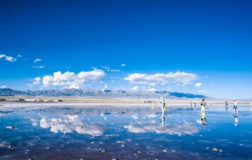 早餐后,我們來到被國家旅游地理雜志評(píng)為“人一生必去的55個(gè)地方”之一的【茶卡鹽湖】。這里的采鹽歷史非常悠久,湖水含鹽量很大,湖面上會(huì)自然結(jié)晶,一片純白。結(jié)晶之上是一層薄薄的露水,將天空、云朵和對(duì)岸的山都倒映在白色的湖里,非常漂亮,所以也被稱為“中國的天空之境”。大家可以乘坐景區(qū)內(nèi)的小火車前往景區(qū)深處游玩,如果不乘坐小火車,沿著鐵軌向湖深處散散步拍拍照片也是非常愜意的。