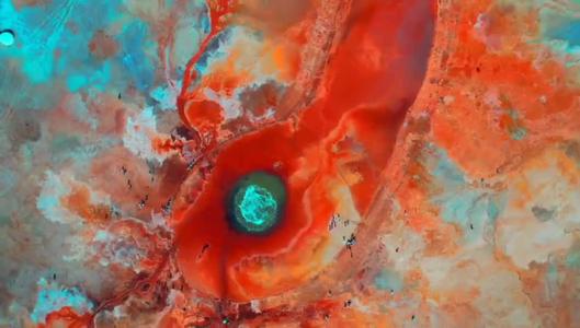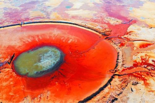 艾肯泉位于青海省海西蒙古族藏族自治州茫崖市花土溝鎮(zhèn)莫合爾布魯克村,被稱為“大地之眼”、“惡魔之眼”。 艾肯泉直徑有10多米,泉眼如同沸騰的開水,不斷翻滾上涌,泉眼周圍硫磺礦物質(zhì)長期沉淀,色彩斑斕。從空中俯瞰,泉眼與噴涌出的泉水以及周圍土地上深紅色環(huán)帶狀的沉淀物,組成了一個(gè)奇特的瞳孔造型,仿佛一只鑲嵌在大地上的眼睛。