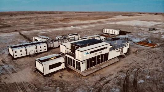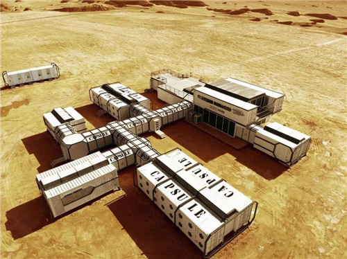 在這片“地球上最不像地球的地方”,以科學(xué)、科普和科幻為核心, 中國首個(gè)研學(xué)火星模擬基地——“火星營地”拔地而起。該項(xiàng)目斥資1.5億,營地建設(shè)風(fēng)格模擬未來人類移居火星后的生存環(huán)境,搭建有“總部大樓”“火星艙”等,和周圍的山色融為一體,就像曾經(jīng)在電影中出現(xiàn)的場景,來到營地的所有人都能身臨其境地體驗(yàn)到居住在火星的狀態(tài),不由自主地想盡快進(jìn)入生存挑戰(zhàn)角色,完成“火星移居”的課題研究。