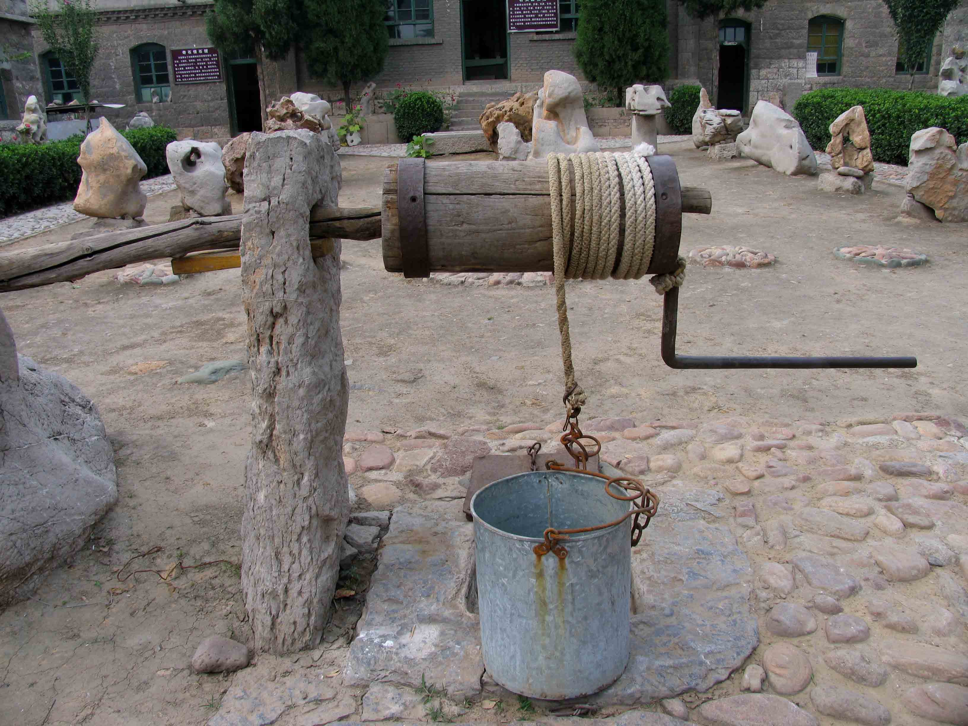這個石頭村在四面環(huán)山的洼地,山巒環(huán)抱,綠樹掩映,不到村頭見不到人家。當(dāng)走過彎彎曲曲的山路,走進(jìn)這個村子,一下就置身于石頭的世界:石樓石閣,石房石院,石桌石凳,石磨石碾,石街石巷,石橋石欄,村路也是古老的石頭鋪就的。鋪路的石頭多是青灰色,石質(zhì)堅(jiān)硬,歲月的摩擦使石頭棱角圓潤光亮,但這石路光而不滑,干爽潔靜,走在上面,腳下發(fā)出輕輕而有韻律的"噠、噠"的聲響,這聲音讓人心中泛起一股寧靜、幽遠(yuǎn)的情思。站在這石頭街上,環(huán)顧四周,與腳下的石路相連的街、巷、胡同全是青色的石路,路的兩旁全是石頭房院,隨便推開一扇石門,便又會看到一個石頭筑造的小天地。