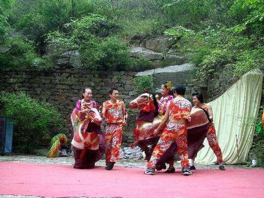 蒼巖山廟會歷史悠久,距今已有一千三百多年歷史,為每年陰歷三月和十月。三月廟會尤為盛大,每逢此節(jié)香客云集,熱鬧非凡。蒼巖山廟會源于對蒼巖圣母的崇拜。隋煬帝之女南陽公主在蒼巖山出家后,利用在宮中學(xué)到的醫(yī)術(shù)在當(dāng)?shù)刂尾【入y。她恩澤四方,留下許多動人故事,她涅槃后被尊為蒼巖圣母。廟會已發(fā)展成為一種民間藝術(shù)表演,人們自發(fā)組織各種極具井陘當(dāng)?shù)靥厣拿袼谆顒樱豪?、皇杠、耍獅舞龍等等前來助興。