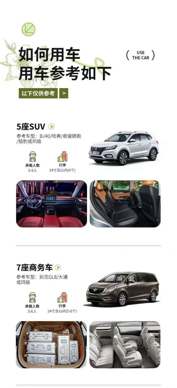 為保證成團及質量,根據(jù)人數(shù)派不同座位數(shù)用車,保證每人一正座;
