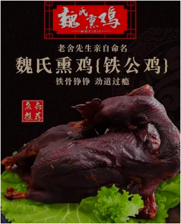 自此,魏氏熏雞代代相傳,歷經(jīng)七代傳人,已有200多年的歷史。魏氏熏雞歷經(jīng)七代傳承,不斷豐富和發(fā)展了餐飲文化,成為魯菜中的代表。其先后被評(píng)為1991年廣州商品交易會(huì)最佳地方名吃、1997年中國山東旅游博覽會(huì)優(yōu)秀旅游商品、2002年中國江北水城(聊城)文化旅游節(jié)指定產(chǎn)品等。2009年,魏氏熏雞被列入第二批山東省非物質(zhì)文化遺產(chǎn)名錄。此外,魏氏熏雞還曾被老舍等著名作家品嘗并贊譽(yù),被譽(yù)為“聊城鐵公雞”。