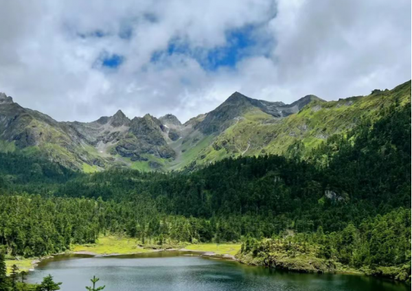 中國湖”形似中國地圖。15座海拔超4000米的雪山與廣袤草甸相映成趣,原始森林古木繁茂,松蘿垂掛,龍膽草、綠絨蒿點(diǎn)綴其間,瀑布溪流靈動(dòng)壯美。