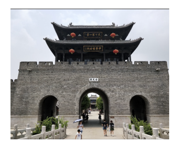 的主題景區(qū)。面前這座雄偉的城門(mén)樓上赫然懸掛著兩塊金宇牌區(qū),最上面的“