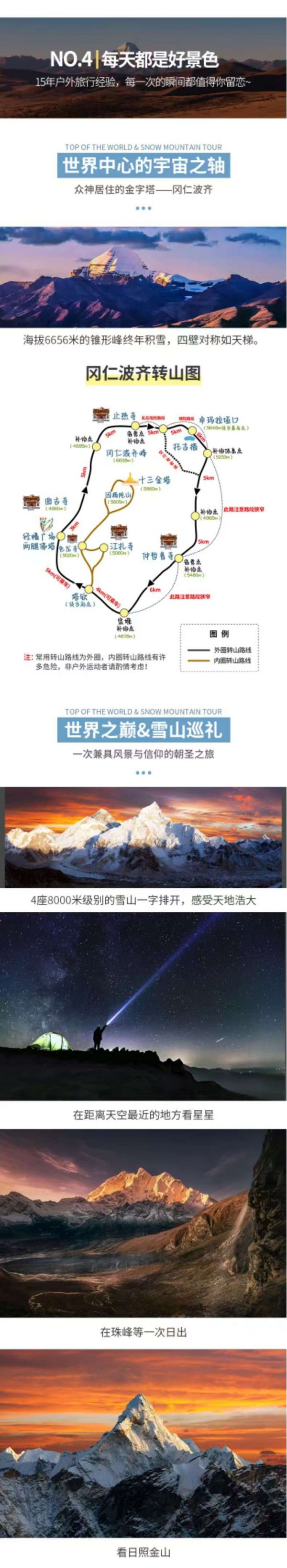 轉(zhuǎn) 山:薩嘎 - 瑪旁雍措 - 納木那尼峰 - 拉昂措 - 塔爾欽 - 岡仁波齊轉(zhuǎn)山起點(diǎn)(經(jīng)幡廣場(chǎng)) - 止熱寺備注:塔爾欽之前是坐車行程,塔爾欽至止熱寺是徒步行程,如需背夫、向?qū)зM(fèi)用自理。