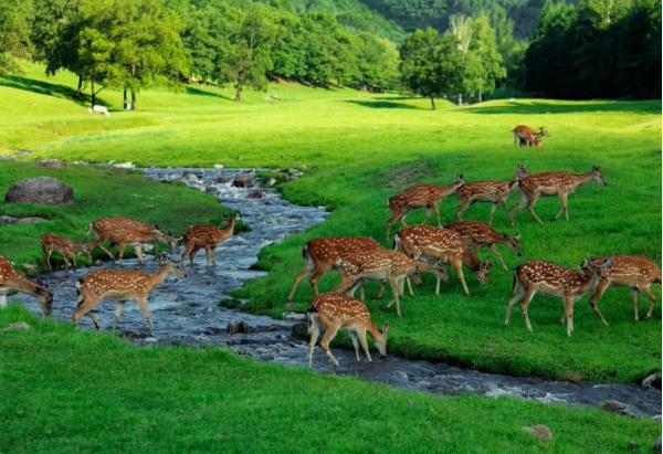 早餐后游九峰山養(yǎng)心谷景區(qū):(距伊春1.5小時(shí)左右,游覽時(shí)間約2小時(shí)左右)中國(guó)十佳魅力生態(tài)景區(qū)---國(guó)家4A景區(qū)九峰山養(yǎng)心谷。九峰山可以用四句話(huà)來(lái)形容——九潭九瀑九龍柱,九橋九亭九花仙,九茶酒水九養(yǎng)地,九溝九溪九峰山。九峰山養(yǎng)心谷景區(qū)2016年以其獨(dú)特的養(yǎng)生文化被評(píng)為國(guó)家AAAA級(jí)景區(qū),景區(qū)總占地面積5280公頃,景區(qū)分為東區(qū)、中區(qū)、南區(qū)及西區(qū),景區(qū)以康養(yǎng)+旅游,研學(xué)游,生態(tài)游為主導(dǎo)思想,讓游客在游玩的同時(shí)與大自然徹底融合,調(diào)節(jié)身體各項(xiàng)細(xì)胞,真正的返樸歸真,最終實(shí)現(xiàn)森林康養(yǎng)的愿望!景區(qū)森林的覆蓋率高達(dá)95%以上,龍舌瀑布和神瀑水潭,貔貅潭、過(guò)水橋等水系環(huán)繞,林下植被豐富,水系發(fā)達(dá),負(fù)氧離子濃度高。觀賞動(dòng)物,暢游花海,中餐后游,中餐后去游覽金山鹿苑(車(chē)程約10分鐘左右,游覽時(shí)間約2小時(shí)):坐落在伊春市金山屯區(qū)境內(nèi)、占地面積有60公頃、鹿苑內(nèi)偌大的草坪寬闊平整、地勢(shì)微微起伏、中間一條小溪從山間緩緩流下、溪水清澈見(jiàn)底、宛如一個(gè)天然的高爾夫球場(chǎng)、偌大的草坪四周群山環(huán)抱、山腳下圍著草坪一條環(huán)形棧道、可以悠閑地圍著鹿苑草坪漫步、鹿苑以半開(kāi)放的形式散養(yǎng)著幾百頭梅花鹿和天山馬鹿、小鹿兒在溪流間嬉戲、在草坪上奔跑、由于自然生態(tài)環(huán)境適宜、也經(jīng)常有野生鹿出沒(méi)、鹿苑腹地占有大半個(gè)山頭、山間的草坪、樹(shù)林、溪流渾然一體、形成一幅祥和獨(dú)特的自然美景!
