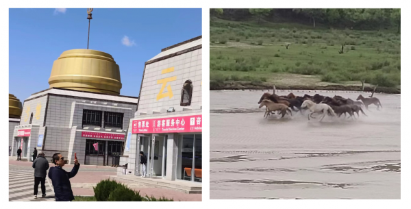 5 月 24 日下午,我們先乘汽車到新鄉(xiāng)東站,又轉乘高鐵抵至石家莊站,中轉換乘綠皮硬臥奔赴赤峰。幾經輾轉,一路北上,于 25 日清晨抵達赤峰南站。提前在此等候的專車又將我們接到赤峰博物館廣場,與山東省旅行社協(xié)會副會長、聊城市精品旅游促進會旅行社專委會會長、聊城市旅行社協(xié)會會長、山東聊城聊之旅國際旅行社有限公司董事長劉寶平以及來自全國各地的 150 多位旅行商順利集結。配合克旗文旅集團完成宣傳視頻的錄制后,車隊駛離市區(qū),“玩轉克什克騰、暢享草原風情”的踩線活動就此拉開帷幕。