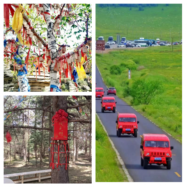 依據行程規(guī)劃,我們逐一打卡了克旗文旅集團的樺木溝、烏蘭布統(tǒng)、達里湖、白音敖包、阿斯哈圖石林等五大經典景區(qū),足跡遍及森林、草原、濕地、湖泊、河流、山梁、丘陵、沙地、石林、火山等多種地形。在樺木溝景區(qū),我們觀賞了極具草原風情的紅色實景劇——大型馬術表演《英雄的鐵蹄馬》,重溫了從“草原騎兵旅”到“朱德騎兵師”那扣人心弦的成長歷程。隨后,我們深入林區(qū),觀摩了薩嶺河灘的萬馬奔騰和馬踏水花等精彩絕倫的臨場表演。其間還分組乘坐“烏蘭勇士”紅色越野車,于草原、沙地、丘陵、溝壑等不同路況中激情穿越。在御景接待中心的歡迎晚宴上,我們品嘗了令人難忘的美酒佳肴,欣賞了美輪美奐的民族服飾和高潮迭起的歌舞節(jié)目,入住體驗了松香四溢的木屋別墅。