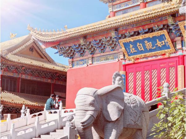 這座藏在老城區(qū)的清代漢傳佛寺,節(jié)日尾聲已無喧囂,只有檐角風(fēng)鈴輕響。四合院式的布局里,金瓦紅墻映著藍天,觀音殿內(nèi)香火繚繞,