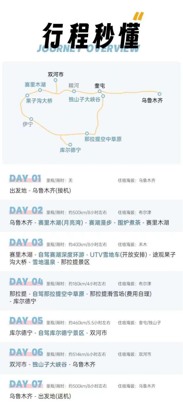 本次行程全程在山林間行駛,路程長,路況復(fù)雜,車輛很可能會出現(xiàn)拋錨的情況。如果車輛本社嚴(yán)格選用持有合法營運(yùn)資質(zhì)的商務(wù)車型,所有車輛均通過年審及定期安全檢測,不接受指定車型要求。新疆運(yùn)管規(guī)定,營運(yùn)車每天行車距離不可超過 600 公里。如超出 600 公里數(shù),司機(jī)將面臨 2-10萬的巨額罰款/吊銷營業(yè)執(zhí)照。因此,行程計(jì)劃外的日常出行活動,建議您自行安排出租車、網(wǎng)約車或其他交通,感謝您的理解與配合。