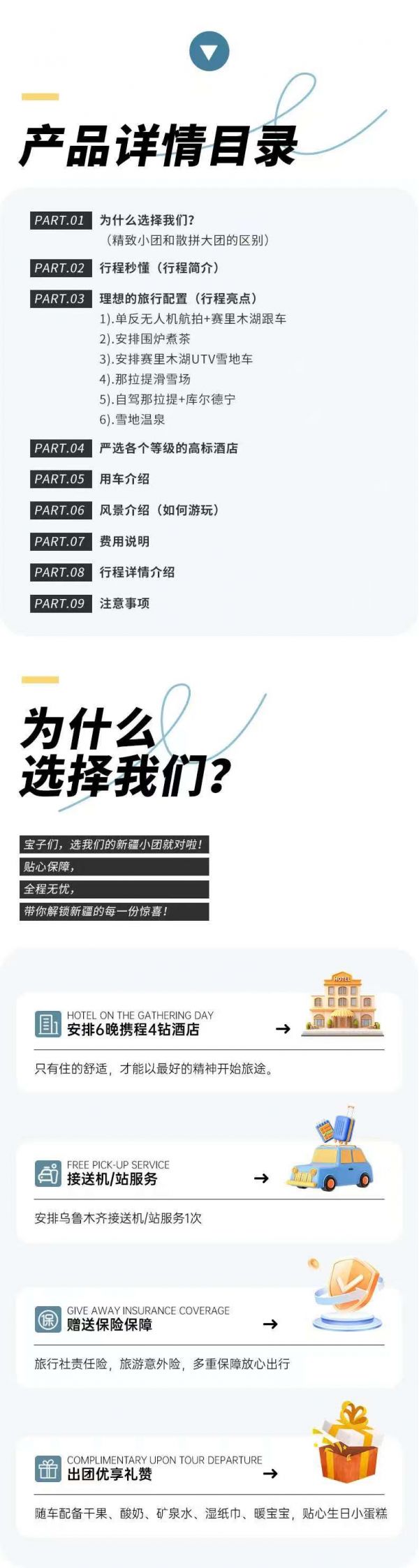 (注:冬季冰雪路面易滑,每年均有不少無冰雪駕駛經(jīng)驗(yàn)的自駕司機(jī)撞到我社車輛。我社每年約有 20-50 臺車輛被撞,交警處理效率高。通常僅涉及保險杠或燈具等小問題,不會因此換車。若車輛嚴(yán)重?fù)p壞無法行駛,我社在阿勒泰地區(qū)有車輛調(diào)度中心,可安排車輛接管游客,通常需耽誤約5小時。此時需游客保持耐心,車上仍提供暖氣,也可就近下車玩耍。此情況下無額外費(fèi)用退還,亦不額外收費(fèi)。修車及換車損失由我社承擔(dān)相比自駕更為安心。)
