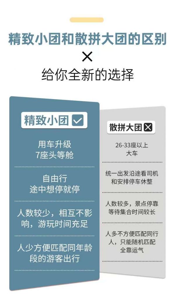本行程為全國 2-6 人拼團(tuán)(2 人成行/6 人上限),因隨機(jī)組客特性,無法提前篩選拼友的年齡、性別、地域等信息。特別提示:對社交環(huán)境有特殊要求的游客,建議選擇定制包車服務(wù)。