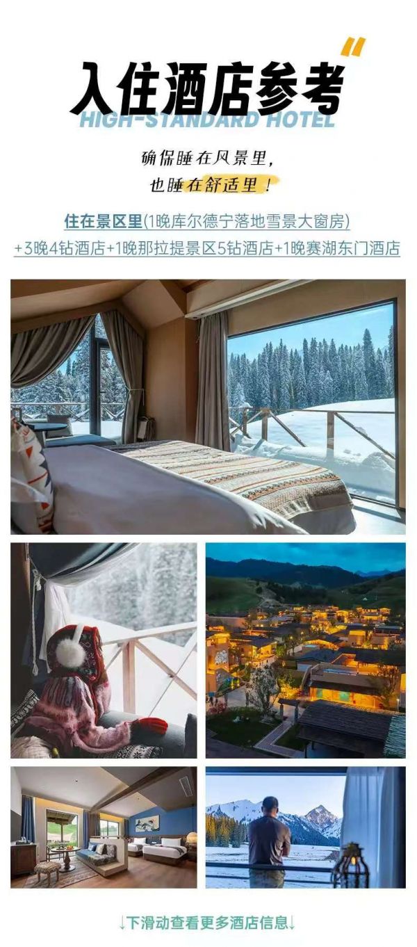 情況一:若正覘對鉦嬋鍋上山的車輛到達(dá)布爾津檢査站時,交警告知山上下大雪清雪封路,若明確通行時間,我們將在檢查站排隊(duì)等候;若明確告知當(dāng)日無法通行,行程將調(diào)整至布爾津酒店安排住宿,行程天數(shù)及費(fèi)用不變。
