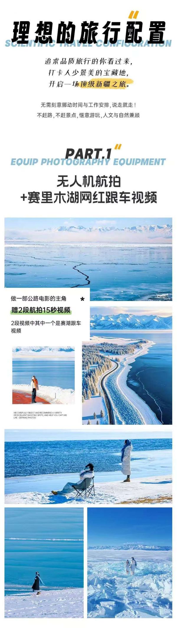 贈送無人機(jī)2段15秒視頻(含賽里木湖跟車視頻),(贈送項(xiàng)目不去不退,僅限天氣情況良好安排;如遇師傅沒有拍攝2段15秒視頻,退50元/人);
