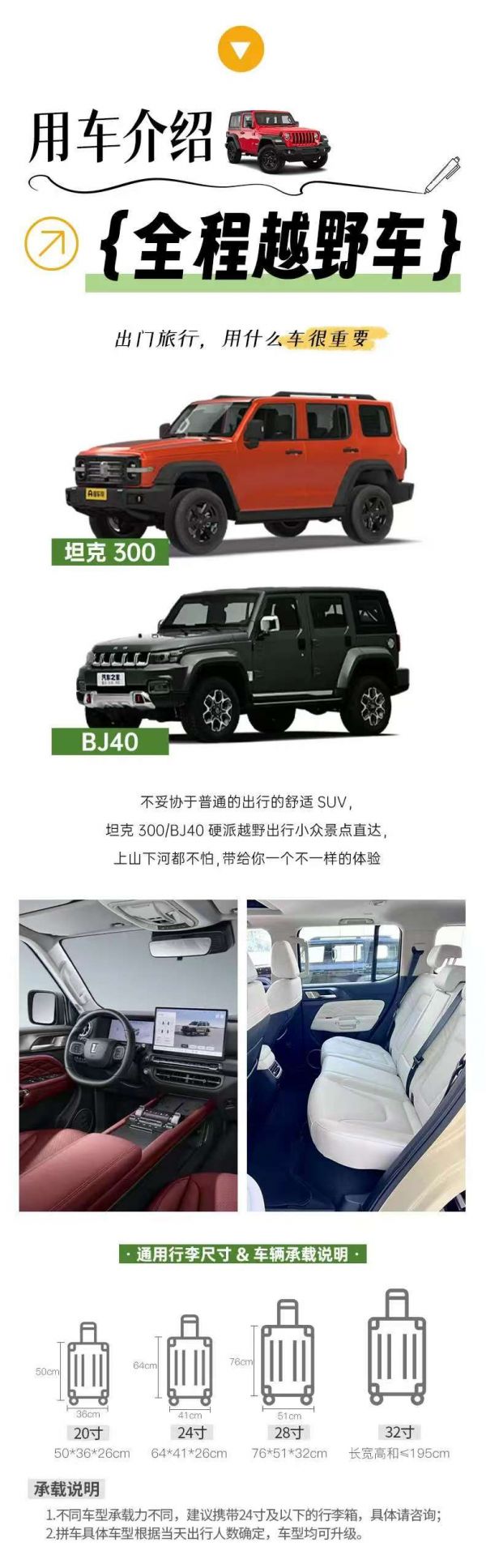 備注:車(chē)型承載力有限,攜帶行李為24寸或以下行李箱。