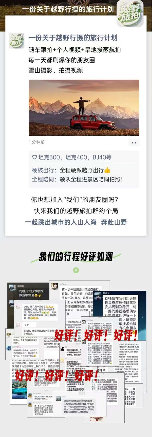 (3)本線路沒有“代購業(yè)務(wù)”,請不要在團隊中或者完團后,請求駕駛員代購任何產(chǎn)品,如有需要請自行篩選、購買。