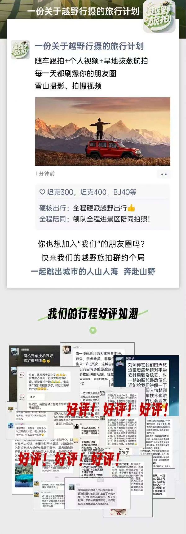 (3)本線路沒有“代購(gòu)業(yè)務(wù)”,請(qǐng)不要在團(tuán)隊(duì)中或者完團(tuán)后,請(qǐng)求駕駛員代購(gòu)任何產(chǎn)品,如有需要請(qǐng)自行篩選、購(gòu)買。