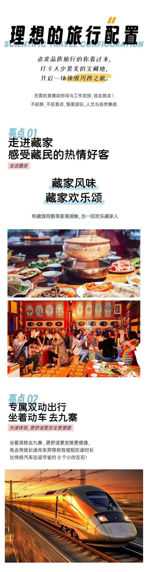 1、產(chǎn)品不含成都高鐵站接送,需根據(jù)實(shí)際出票車次時(shí)間自行提前計(jì)劃好時(shí)間前往成都東站乘車;工作人員會(huì)在出團(tuán)前1天晚 18點(diǎn)-21點(diǎn)左右與您聯(lián)系,下高鐵后工作人員在出站口接站,請(qǐng)保持手機(jī)暢通,注意接聽(tīng)電話。列車全面實(shí)施電子客票,旅客購(gòu)票、進(jìn)站、乘車均不再提供紙質(zhì)車票,進(jìn)出站時(shí),旅客需憑本人身份證原件通過(guò)自助閘機(jī)進(jìn)行驗(yàn)證,辦理進(jìn)出站手續(xù);請(qǐng)游客提前帶好身份證等相關(guān)證件并配合檢查;產(chǎn)品不含成都高鐵站接送,需根據(jù)實(shí)際出票車次時(shí)間自行提前計(jì)劃好時(shí)間前往對(duì)應(yīng)的成都火車站乘車(成都火車站分為火車東站/火車南站/火車西站/火車北站(成都站),請(qǐng)注意核對(duì)旅行社最終發(fā)送給您的車次信息,以免走錯(cuò)站);工作人員會(huì)在出團(tuán)前1天晚 18點(diǎn)-21點(diǎn)左右與您聯(lián)系,下高鐵后工作人員在出站口接站,請(qǐng)保持手機(jī)暢通,注意接聽(tīng)電話。列車全面實(shí)施電子客票,旅客購(gòu)票、進(jìn)站、乘車均不再提供紙質(zhì)車票,進(jìn)出站時(shí),旅客需憑本人身份證原件通過(guò)自助閘機(jī)進(jìn)行驗(yàn)證,辦理進(jìn)出站手續(xù);請(qǐng)游客提前帶好身份證等相關(guān)證件并配合檢查;