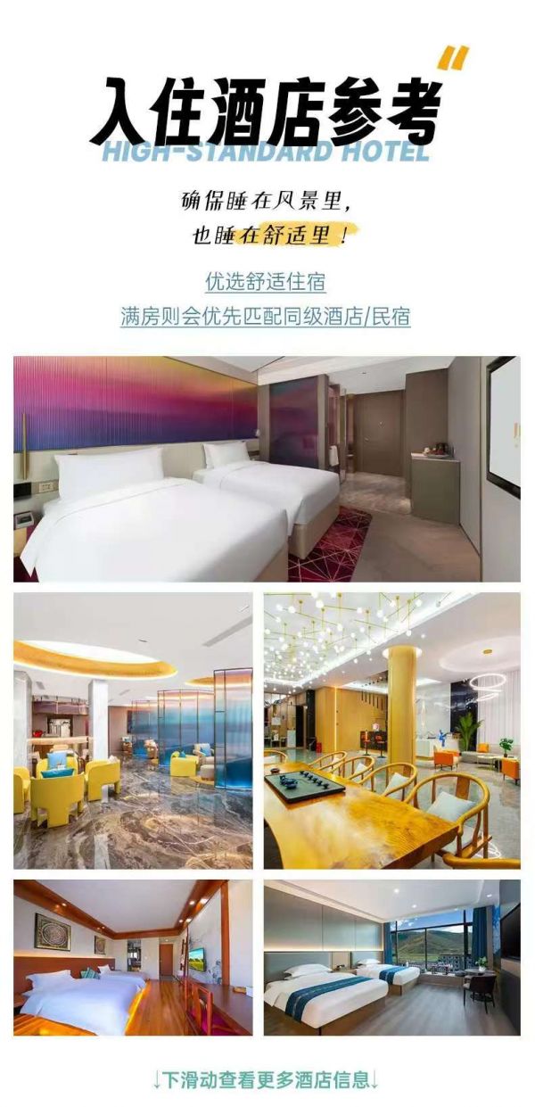 注意:住宿及景區(qū)同樣出示證件!敬請(qǐng)配合旅行社工作!如因個(gè)人原因沒(méi)有攜帶有效身份證件造成無(wú)法辦理入住手續(xù)所造成的損失,游客自行承擔(dān)責(zé)任。