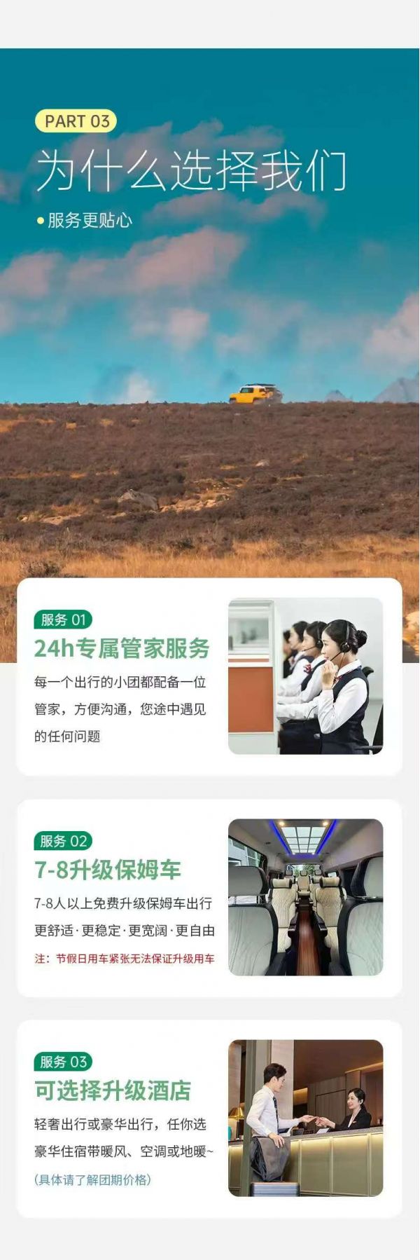 如遇以上情況,我社有權(quán)在保證出行安全的情況下調(diào)整路線或與游客協(xié)商增減景點~~還望理解。(望廣大游客在出行前知曉此類情況,不接受因天氣原因造成的景點路線增減導致的投訴)