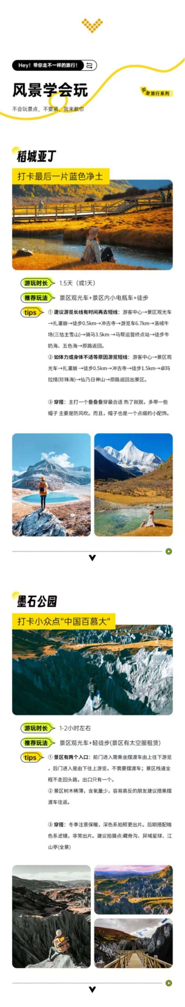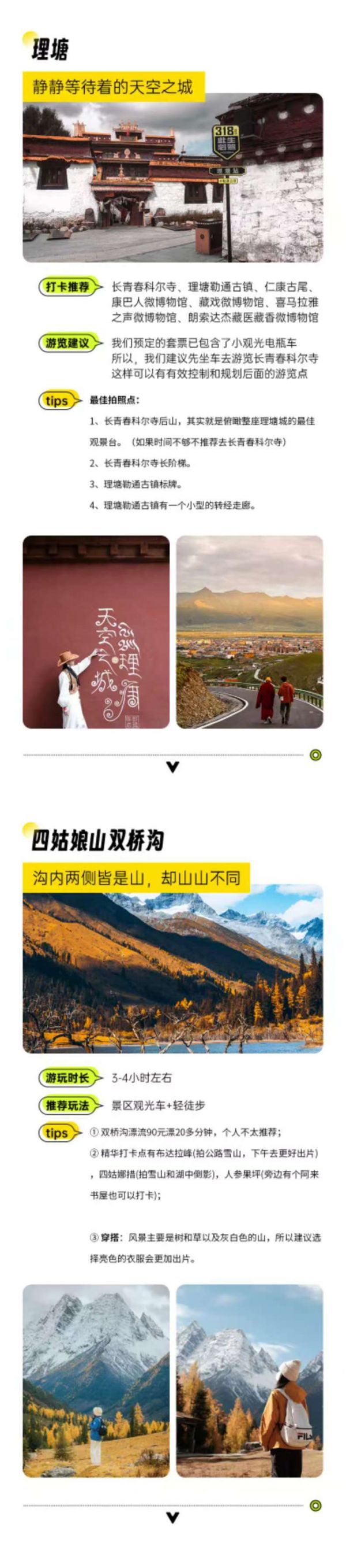 包含四姑娘山雙橋溝門票、墨石公園門票、理塘勒通古鎮(zhèn)套票(包含博物館+講解+觀光車)、亞丁景區(qū)門票