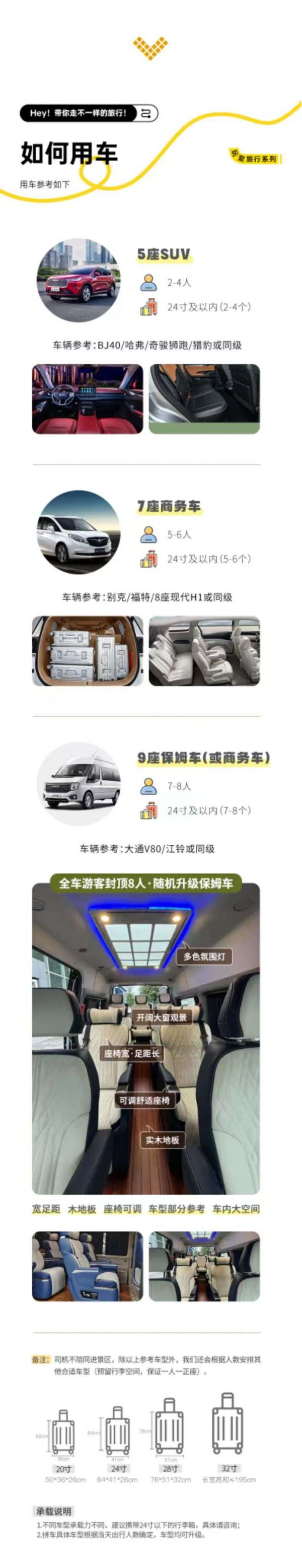 備注:車型承載力有限,攜帶行李為24寸或以下行李箱。