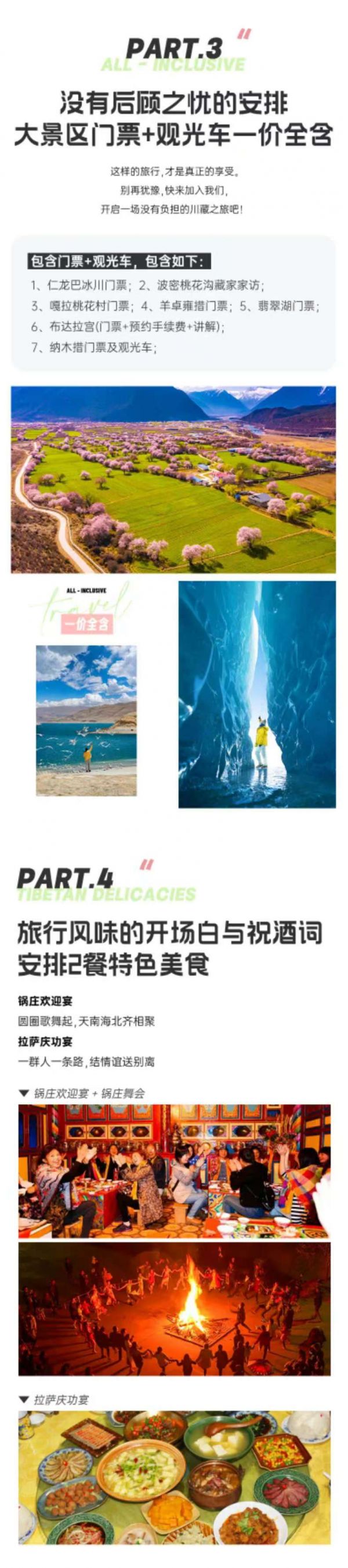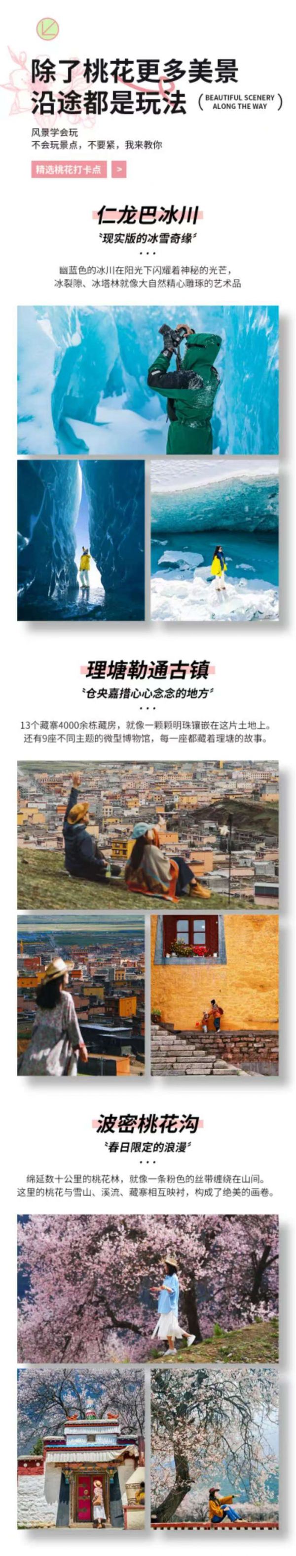 仁龍巴冰川門票、波密桃花溝藏家家訪、嘎拉桃花村門票、秀巴千年古堡門票、布達(dá)拉宮(門票+預(yù)約手續(xù)費+講解)、羊卓雍措門票、納木措門票及觀光車、翡翠湖門票