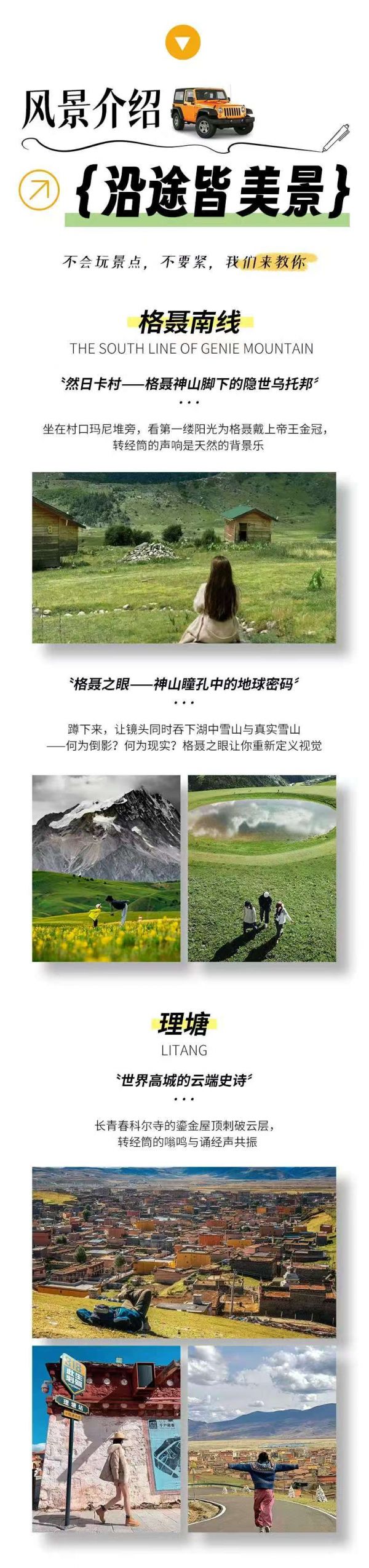 景點海拔:天全服務區(qū)(680)、紅海子觀景臺(4100)、格底拉姆(4200)