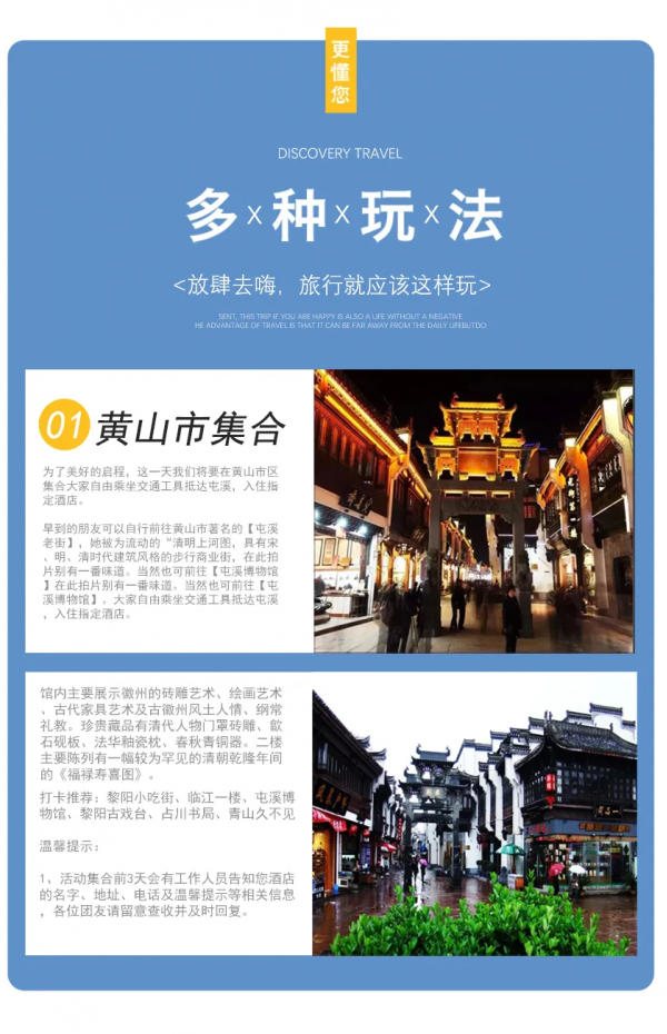 【集合地點(diǎn)】黃山市黎陽老街,出發(fā)前三天短信通知酒店