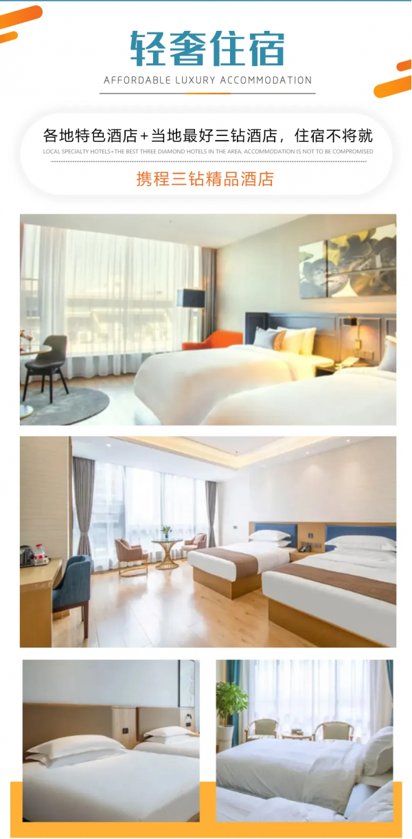 3、 行程中的所列的酒店類型,2星/2鉆=經(jīng)濟(jì)型;3星/3鉆=舒適型;4星/4鉆=高檔型;5星/5鉆=豪華型;意為評(píng)定或條件到達(dá)相應(yīng)標(biāo)準(zhǔn)的酒店,少部分地區(qū),由于政策等因素,可能存在酒店條件滿足,但未進(jìn)行星鉆評(píng)定的情況;