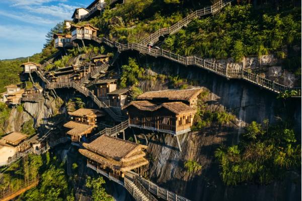 望仙谷位于江西省上饒市廣信區(qū)望仙鄉(xiāng),是一座依托獨(dú)特丹霞地貌和峽谷風(fēng)光,以懸崖民宿、仙俠主題、贛家文化為特色的國(guó)家4A級(jí)旅游景區(qū)。這里將自然奇觀、人文體驗(yàn)與沉浸式游憩完美結(jié)合,被譽(yù)為“懸崖上的仙俠世界”。