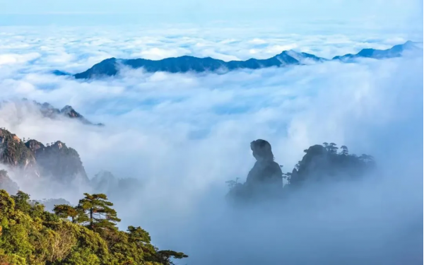 三清山有“小黃山”之稱,是著名的道教名山。這里的景色也有幾分仙氣,能看漂亮的云海,欣賞山間惟妙惟肖的奇石,還能走上高空棧道賞景。
