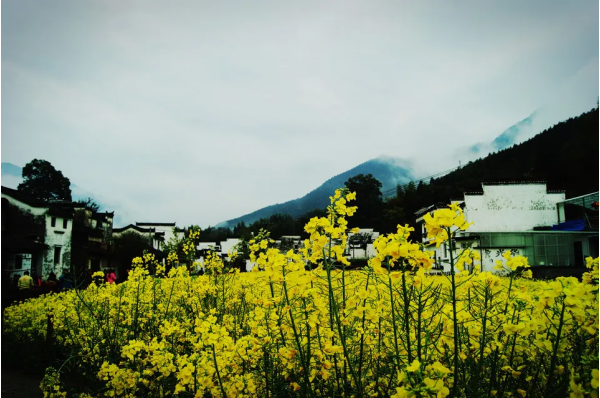 走進徽州,仿如步入油菜花的天堂,金黃綢帶是一條引向油菜花天堂的路。