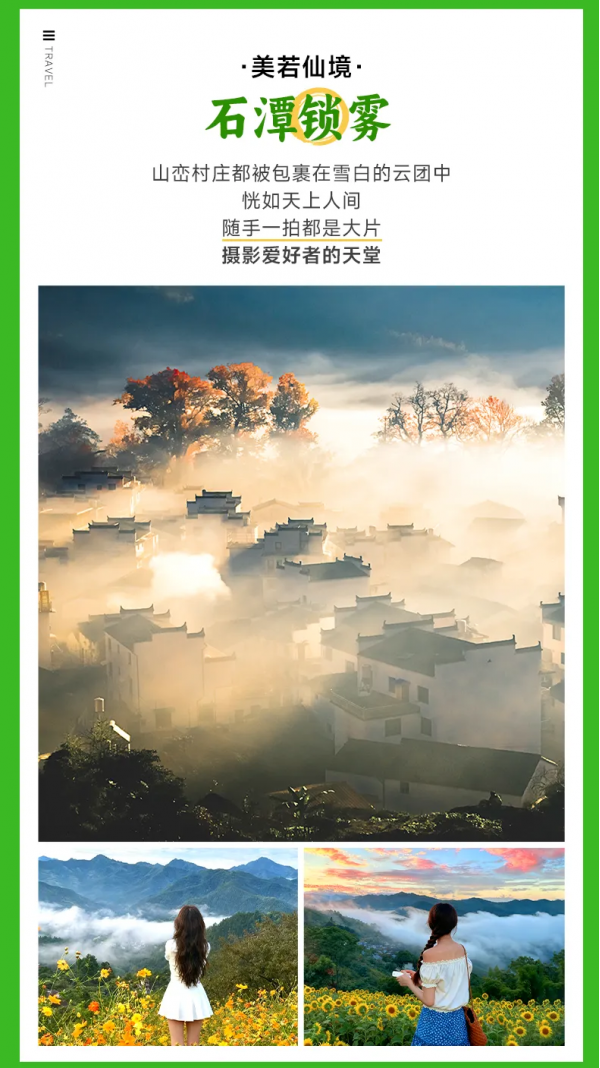 今天早起觀“石潭晨霧”,晨霧裊繞,隨著太陽的逐漸升起,霧氣慢慢散去,露出徽派特有的白色建筑??赐耆粘龊螅蠹铱梢栽诖謇锫叫袛z,也可以自行準備徒步路餐。