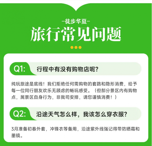 ● 在活動行程中,景區(qū)、餐廳、休息區(qū)等地存在非本公司安排的購物場所,本公司提醒您,理性消費并索要憑證,如產(chǎn)生消費爭議,將由您與售賣商品的商家自行解決。