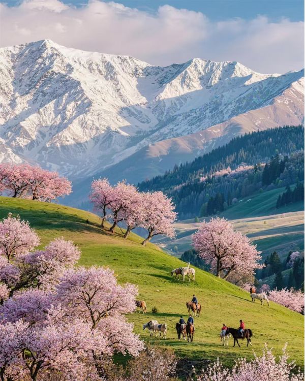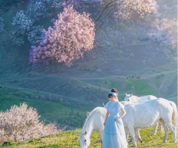 伊犁吐?tīng)柛踊?/span> 中世紀(jì)野生杏林,粉色花海鋪滿山坡
